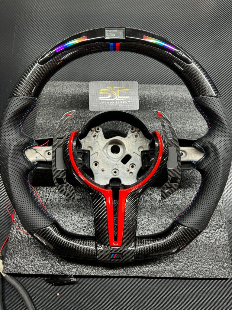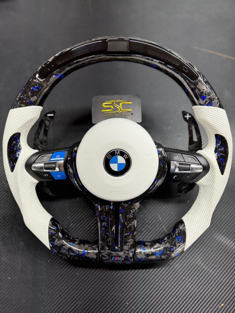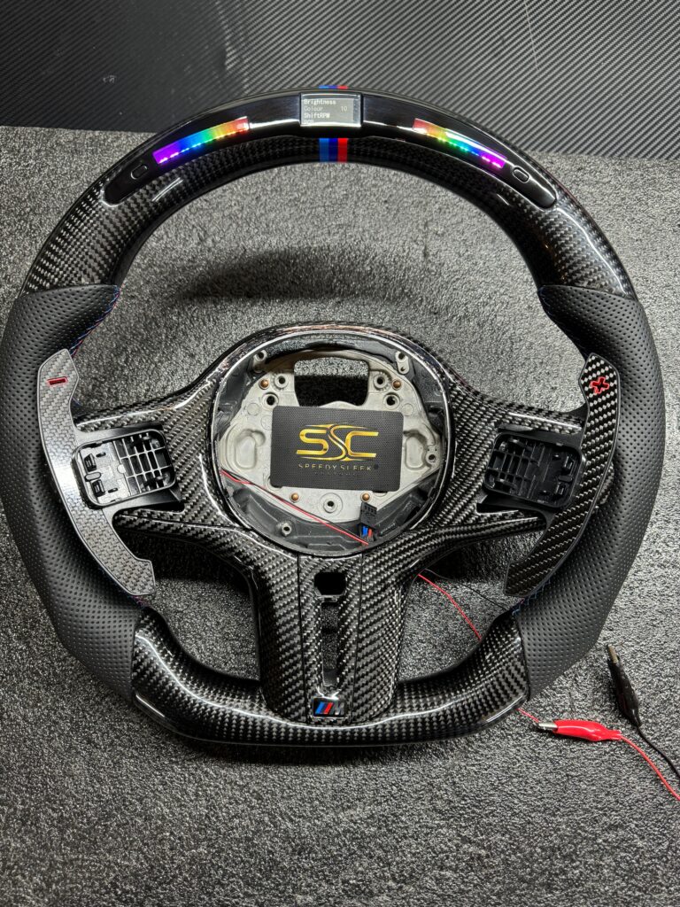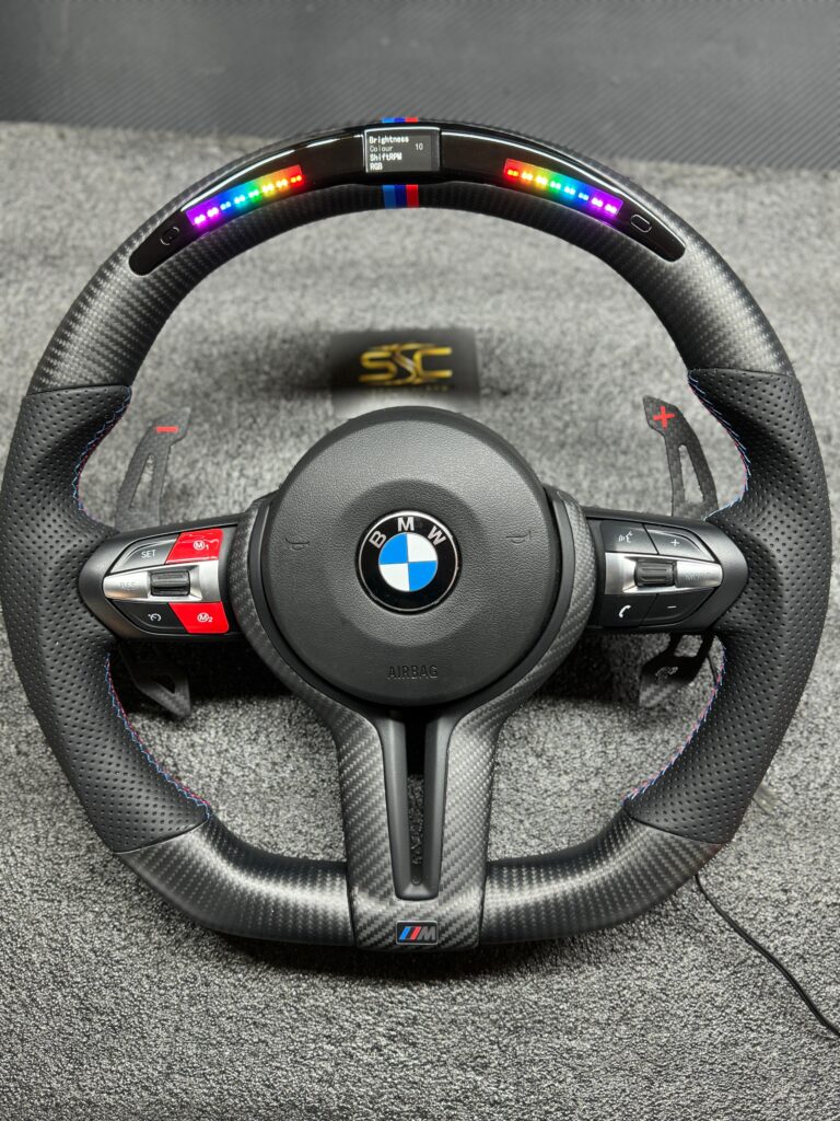 BMW LED Steering Wheel, Genuine Carbon Forged with Flat Bottom, Full Wheel
