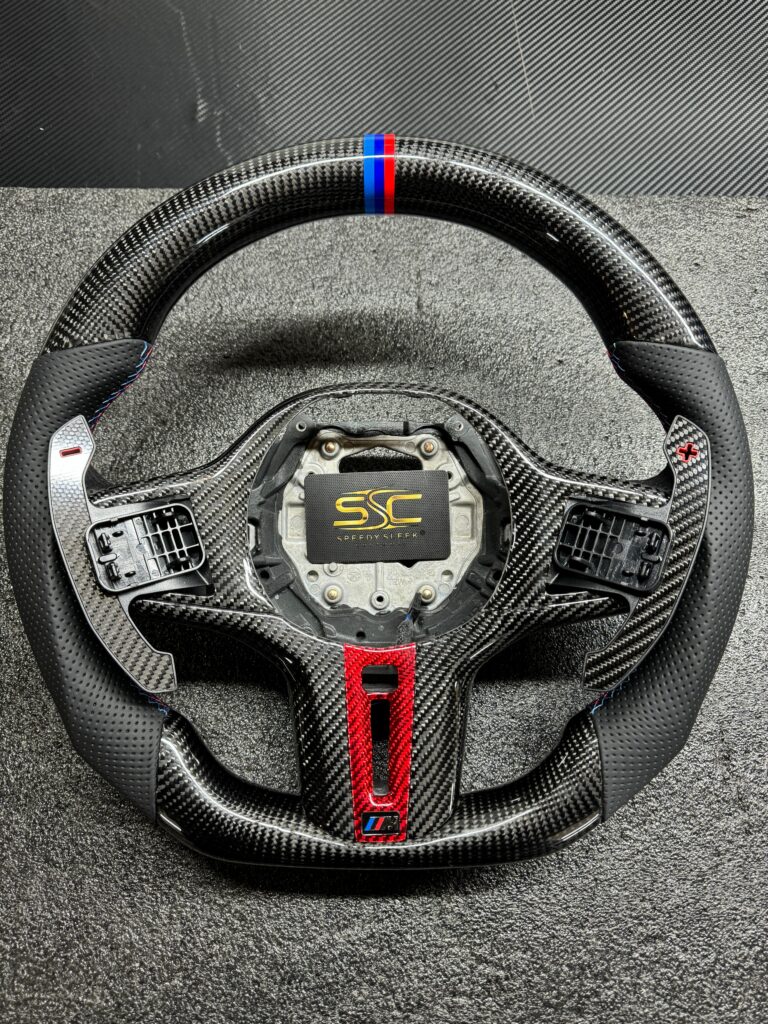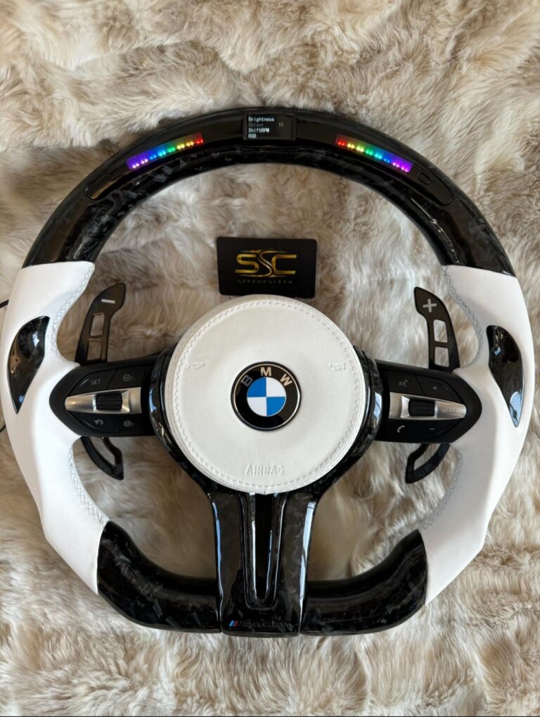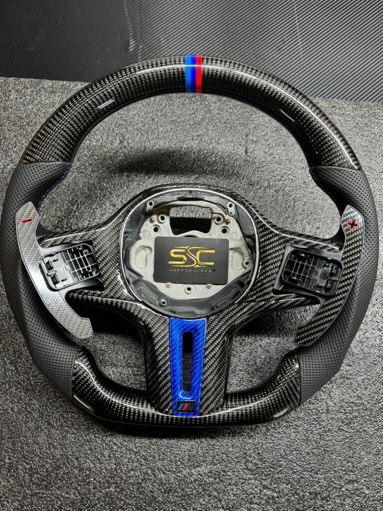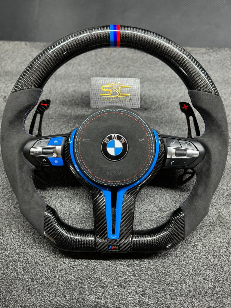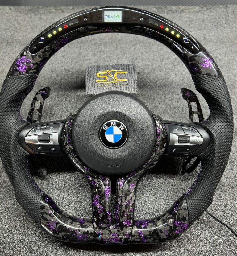 BMW LED Steering Wheel, Genuine Carbon Forged with Flat Bottom, Full Wheel