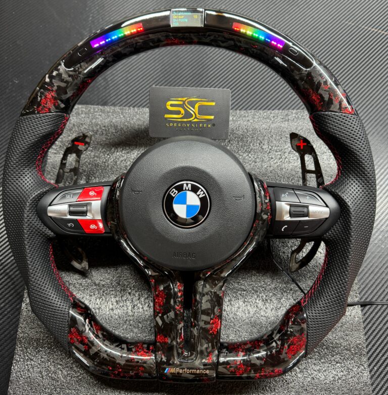 BMW LED Steering Wheel, Genuine Carbon Forged with Flat Bottom, Full Set