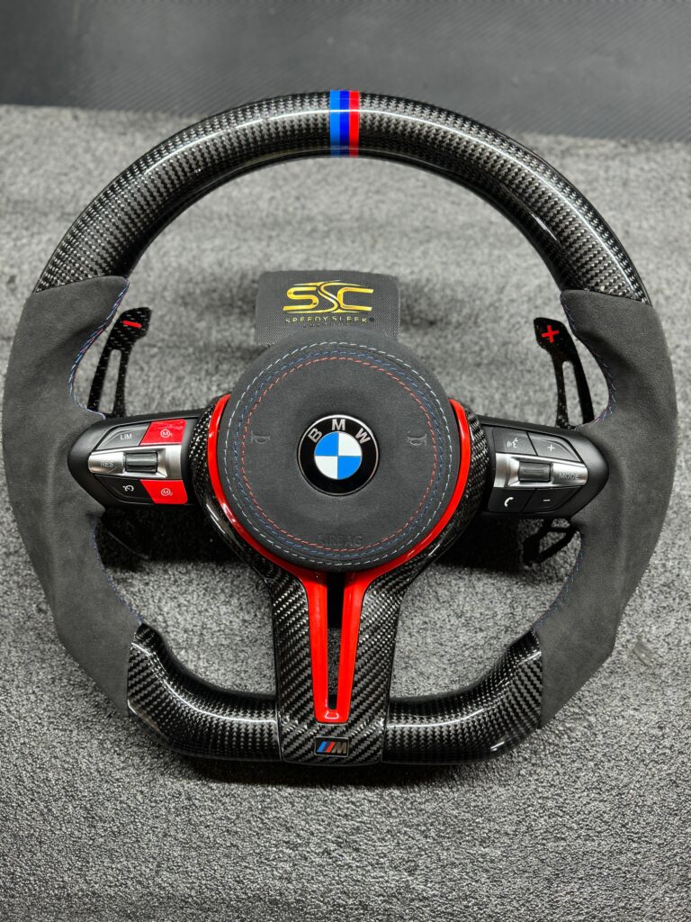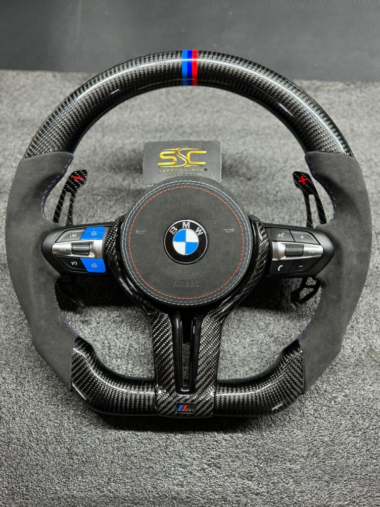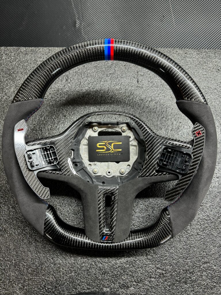BMW Steering Wheel for G series Models, Carbon Fibre with Flat Bottom, Alcantara Side Grip
