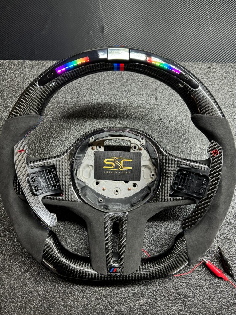 BMW LED Steering Wheel for G series Models, Carbon Fibre with Flat Bottom, Alcantara Side Grip