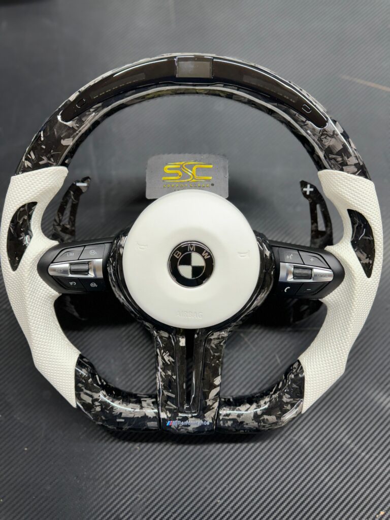 BMW LED Steering Wheel, Genuine Carbon Forged with Flat Bottom, Full Wheel